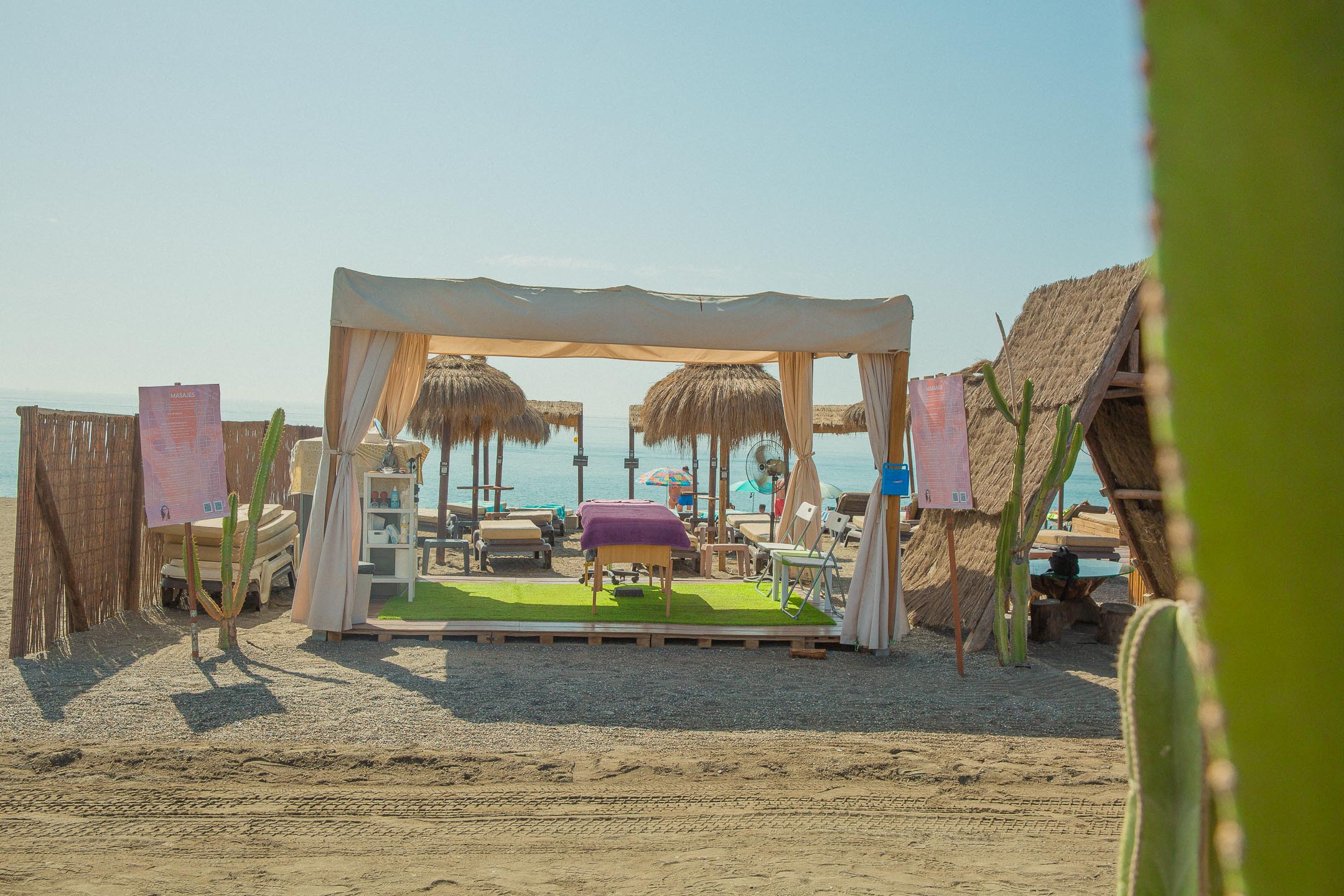 During the summer season (around May-October) we are offering our massage services on the beach in Torre Del Mar in a quality restaurant Bahía Beach Jazba – if you want to have a whole day of deep relaxation on the beach with tasty food and good service.